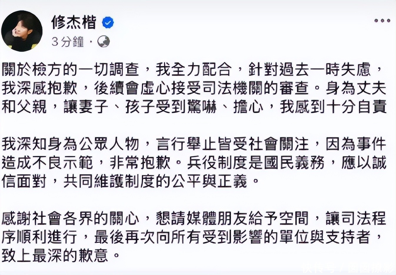 修杰楷随后发文道歉,字里行间满是对家人的愧疚。